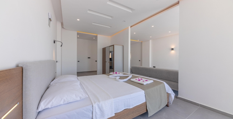 1. Yatak odası: 1 Adet çift kişilik yatak, komodin, makyaj masası, elbise dolabı, klima, banyo & tuvalet, jakuzi bulunmaktadır .